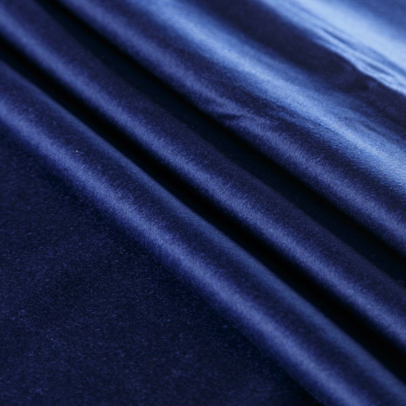 Итальянский пальтовый кашемир в благородном синем оттенке. Ткань мягкая, пластичная, приятная на ощупь, гибкая, средней толщины, при этом высокой плотности. Поверхность имеет короткий ворс. Подойдет для пошива пальто, куртки, жакета, парки, кейпа, жакета или пончо.