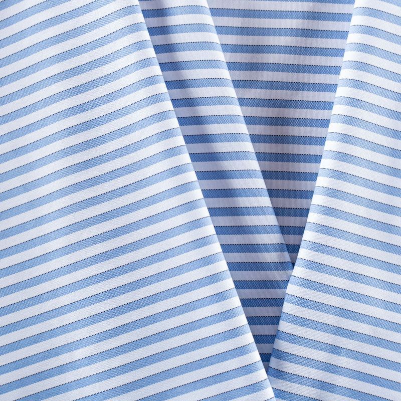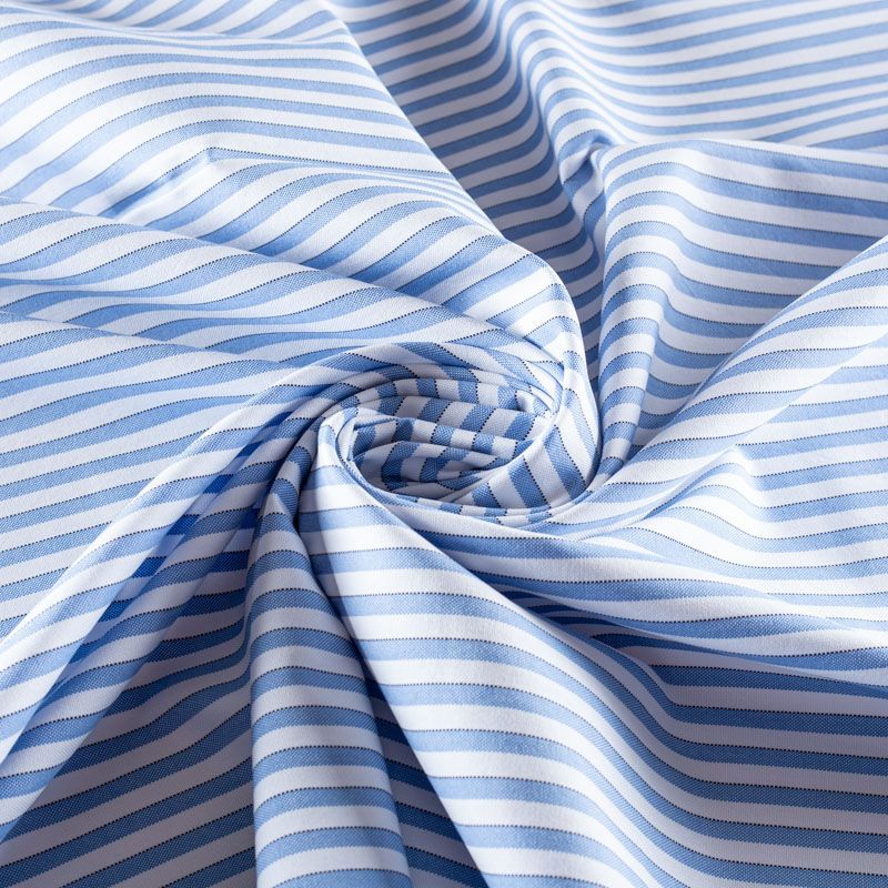 Итальянский плательно-рубашечный хлопок в бело-голубую полоску средней ширины. Ткань мягкая, лёгкая, непрозрачная, пластичная и приятная к телу, хорошо драпируется, имеет гладкую матовую поверхность и сатиновое плетение. Прекрасно подойдет как для пошива платья-рубашки, сарафана, платьев различных фасонов, туники, топа, летнего костюма, комбинезона, мужской и детской одежды.