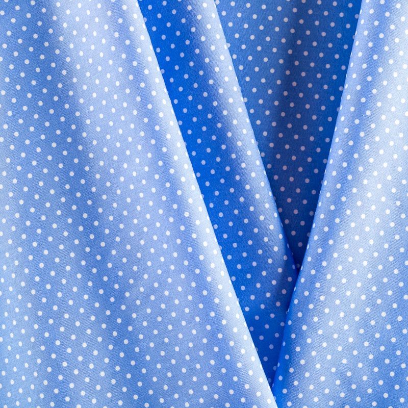 Плательно-блузочная ткань из натурального хлопка в мелкий горошек. Ткань легкая, тонкая, хорошо "дышит", мягкая, не прозрачная, немного тянется за счет эластана в составе. Подойдет для пошива летнего платья, летящей юбки, блузы, сарафана, комбинезона или рубашки.