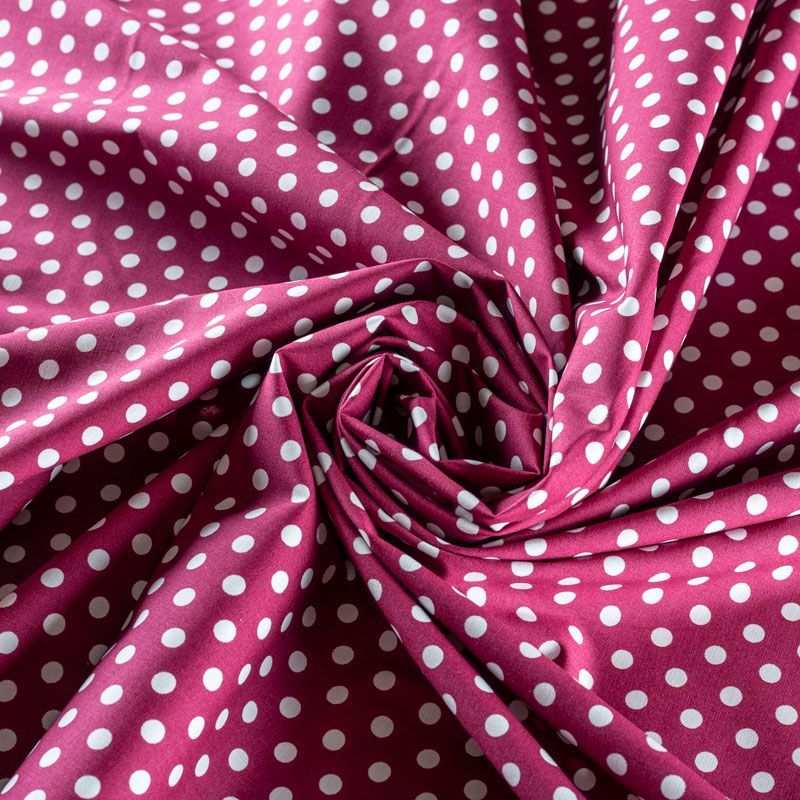 Плательно-блузочная ткань из натурального хлопка с принтом горох. Ткань легкая, тонкая, хорошо "дышит", мягкая, не прозрачная, немного тянется за счет эластана в составе. Подойдет для пошива летнего платья, летящей юбки, блузы, сарафана, комбинезона или рубашки.