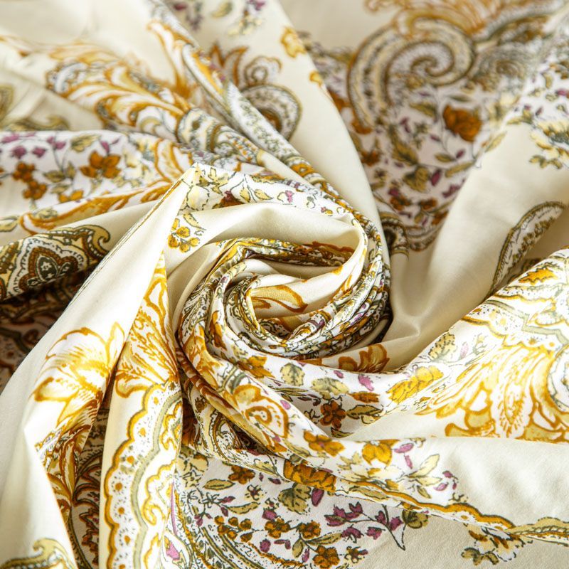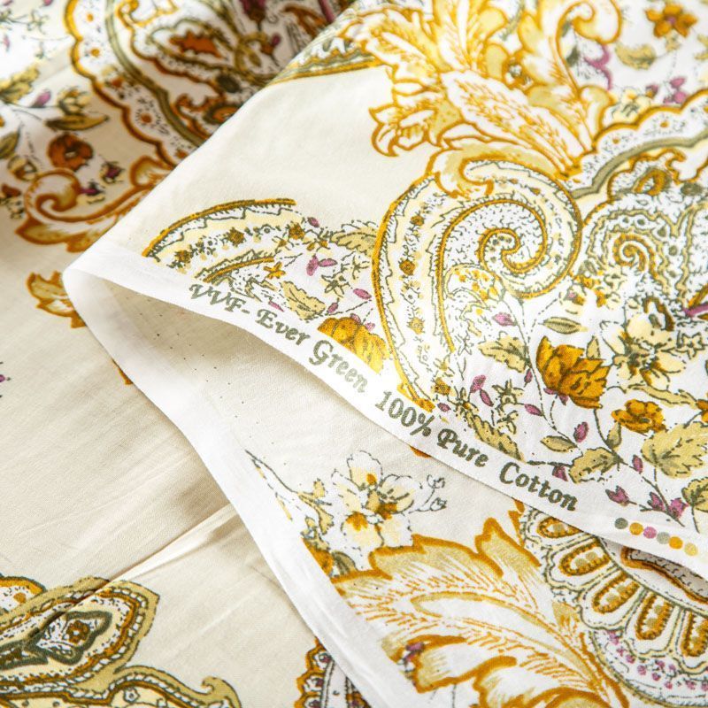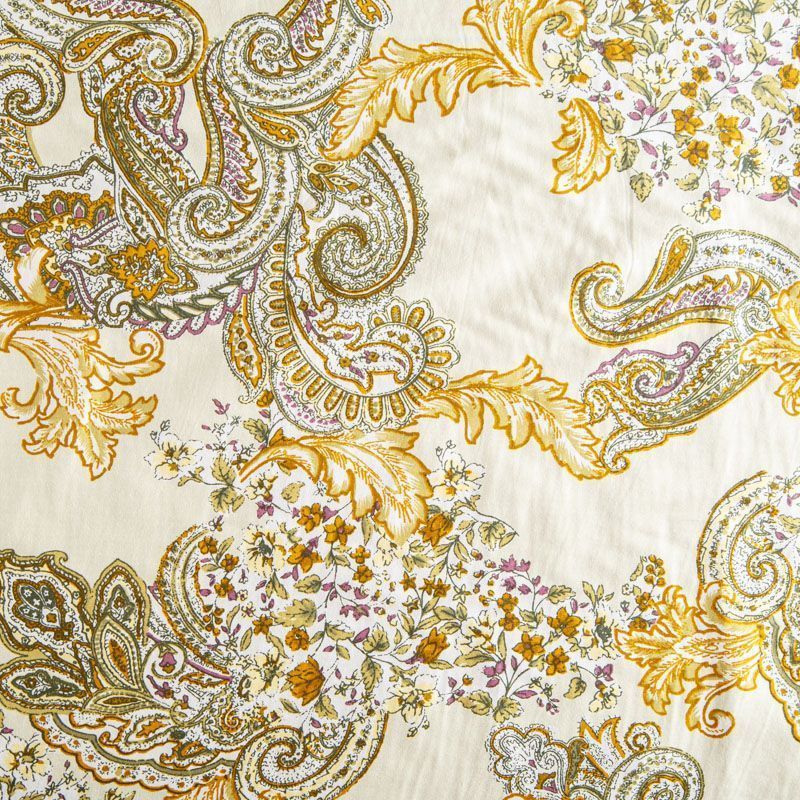 Плательно-рубашечная ткань из натурального хлопка с узором пейсли. Ткань легкая, тонкая, хорошо "дышит", слегка держит форму, не сухая, не прозрачная. Подойдет для пошива летнего платья, летящей юбки, блузы, сарафана, комбинезона или рубашки, а также для домашней одежды.