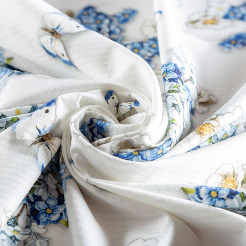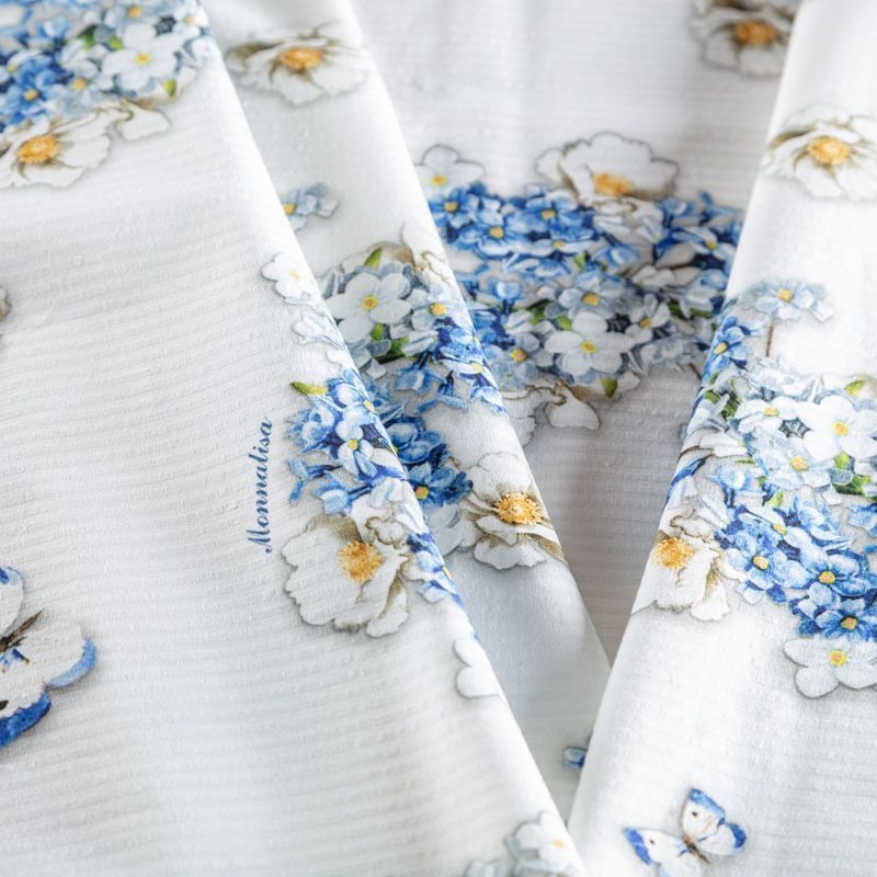 Плательно-рубашечный жаккардовый хлопок от бренда Monnalisa с цветочным летним принтом в сине-голубых оттенках. Ткань пластичная, легкая, немного просвечивает, поверхность гладкая, приятная на ощупь. Подойдет для пошива платья, рубашек, платья-рубашки, юбки, сарафана, туники, комбинезона, домашней одежды.