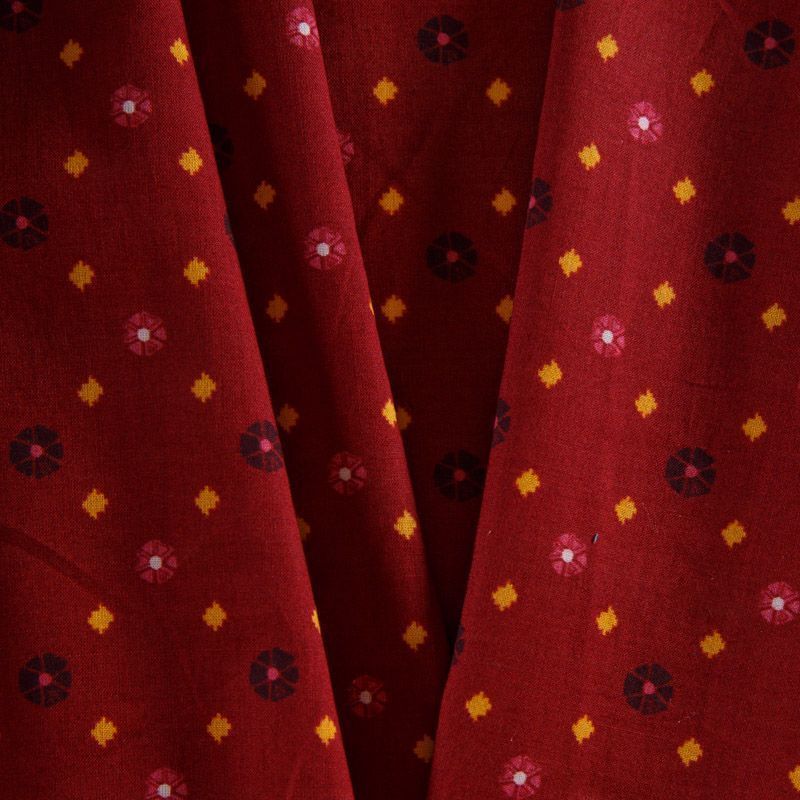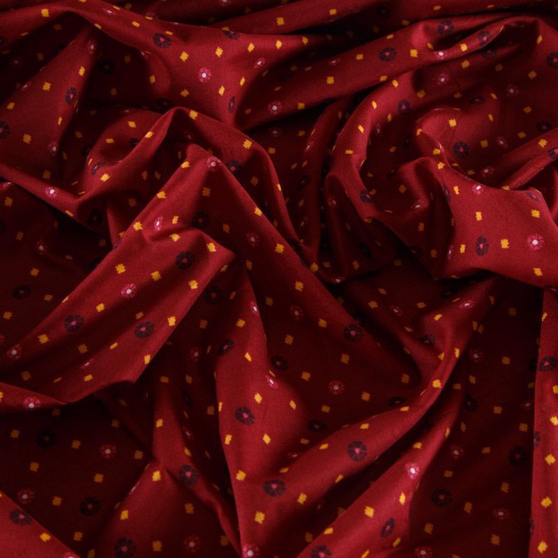 Хлопок 063-12209 кирпично-бордовый принтованный