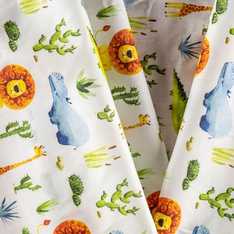 Итальянский натуральный хлопок с детским анималистическим рисунком в пастельных тонах. Ткань легкая, тонкая, хорошо "дышит", мягкая, слегка прозрачная, по плотности напоминает батист. Подойдет для пошива домашней одежды, детских летних платьев, песочников, юбки, сарафана или рубашки, а также для для пошива постельных принадлежностей, подушек, покрывал, скрапбукинга, корзин и других видов творчества.