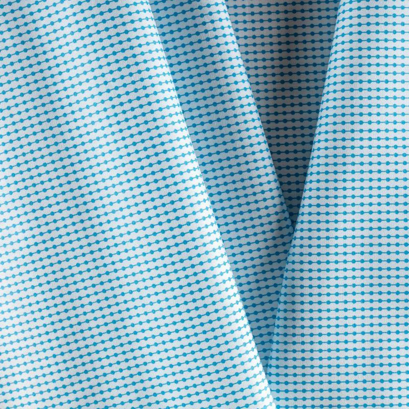 На белом фоне тонкая полоса в виде стилизованной цепочки голубого цвета.