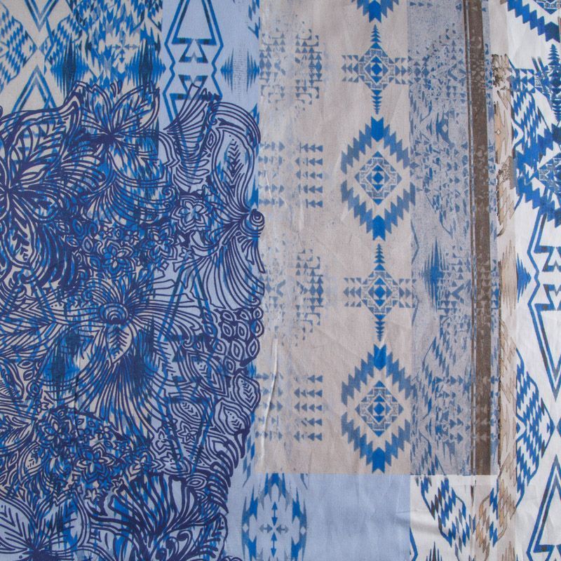 Тонкая и воздушная плательно-блузочная ткань Marni из 100% хлопка с этническим принтом. Поверхность матовая. Ткань слегка просвечивает, очень мягкая на ощупь, полотняного плетения, летящая, пластичная, великолепно драпируется, подвержена характерному для хлопка сминанию.