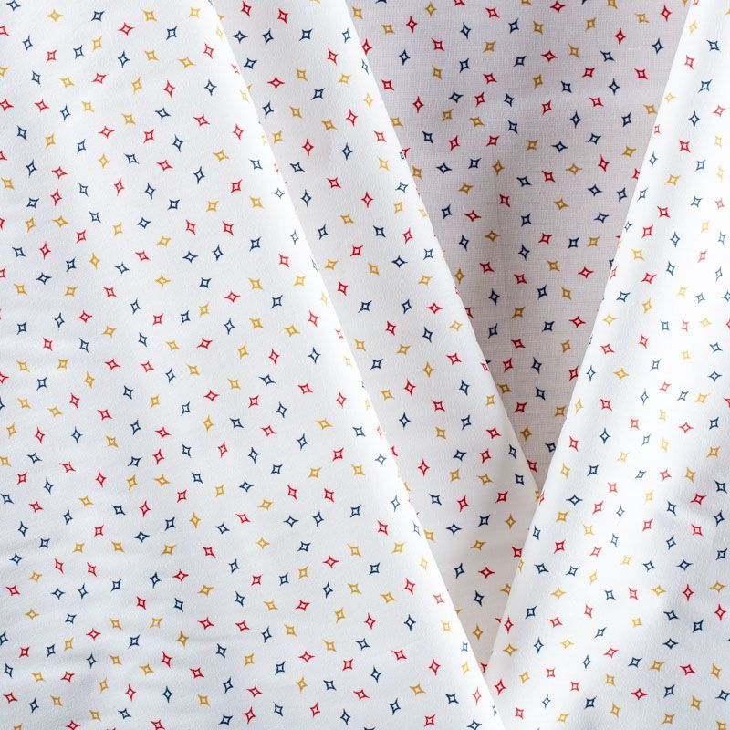 Плательно-рубашечный хлопок в разноцветный мелкий геометрический рисунок. Ткань мягкая, лёгкая, непрозрачная, пластичная и приятная к телу, хорошо драпируется, имеет гладкую матовую поверхность и сатиновое плетение. Прекрасно подойдет как для пошива платья-рубашки, сарафана, платьев различных фасонов, туники, топа, летнего костюма, комбинезона, мужской и детской одежды.