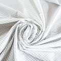 Плательно-рубашечный хлопок в белого цвета в мелкую клеточку. Ткань мягкая, лёгкая, непрозрачная, пластичная и приятная к телу, хорошо драпируется, имеет гладкую матовую поверхность и сатиновое плетение. Прекрасно подойдет как для пошива платья-рубашки, сарафана, платьев различных фасонов, туники, топа, летнего костюма, комбинезона, мужкой и детской одежды.