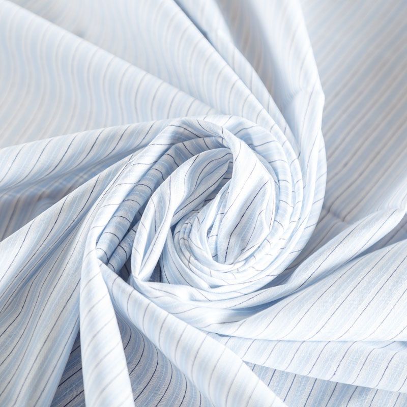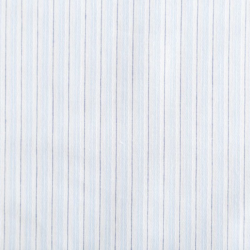 Плательно-рубашечный хлопок в белого цвета освежает бледно-голубая полоска. Ткань мягкая, лёгкая, непрозрачная, пластичная и приятная к телу, хорошо драпируется, имеет гладкую матовую поверхность и сатиновое плетение. Прекрасно подойдет как для пошива платья-рубашки, сарафана, платьев различных фасонов, туники, топа, летнего костюма, комбинезона, мужкой и детской одежды.