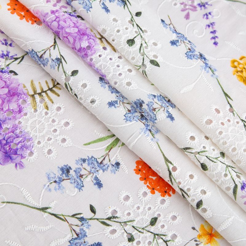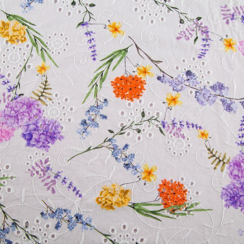 Хлопок с вышивкой 067-20129 белый принтованный в Уфе