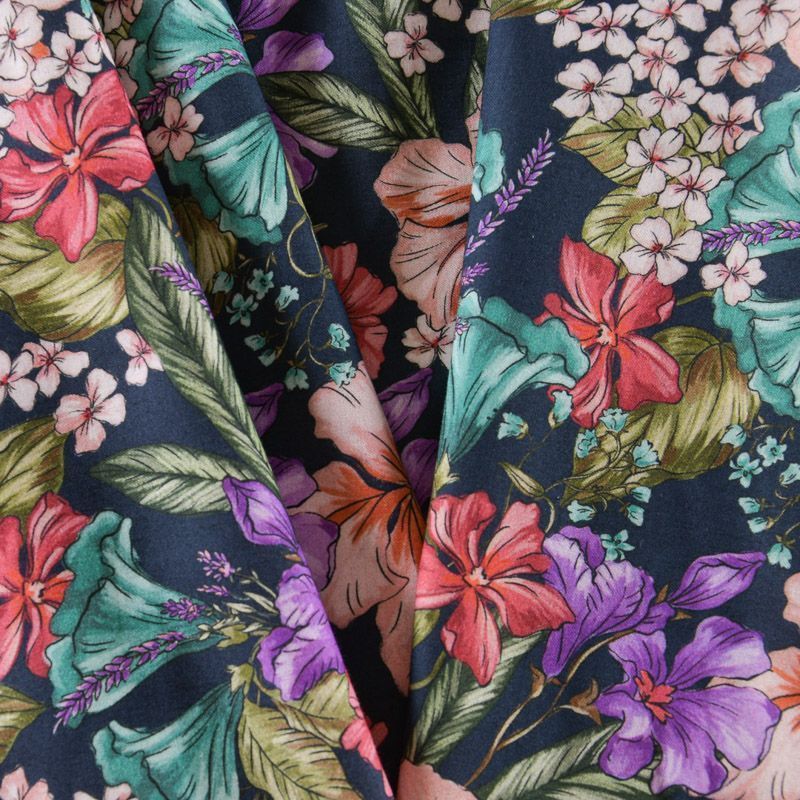 Хлопок стрейч 063-12074 темно-синий принтованный