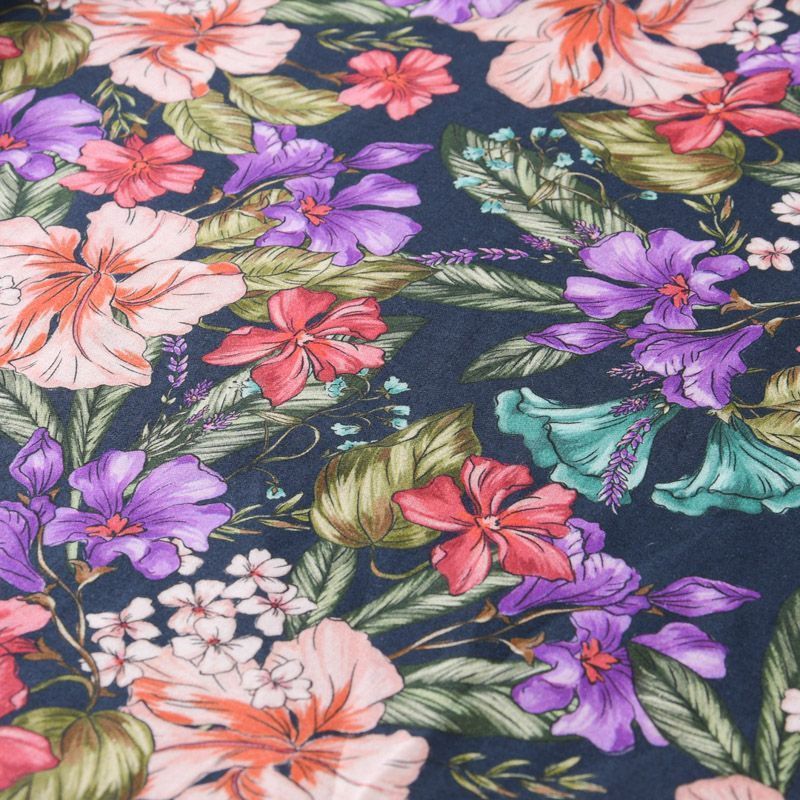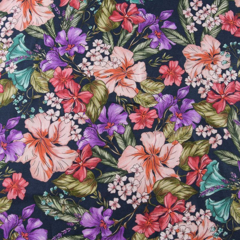 Хлопок стрейч 063-12074 темно-синий принтованный в Уфе