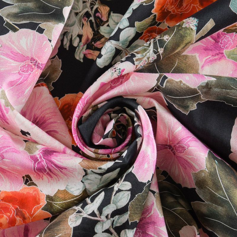 Хлопок стрейч 063-12101 черный принтованный в Уфе