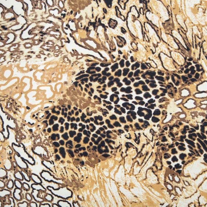Ткань средней плотности, мягкая, приятная на ощупь, эластичная, держит форму, смотрится красиво, женственно. Подойдет для пошива костюма жакета, юбки, платья и других изделий, на теплый и прохладный сезоны.