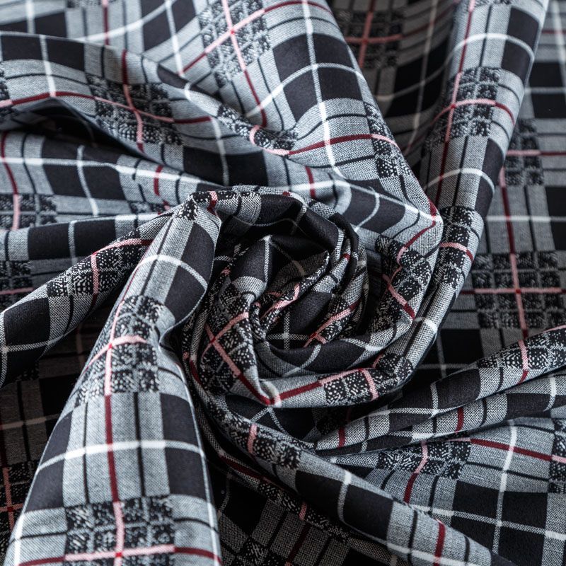 Ткань костмно-плательной плотности, приятная на ощупь, эластичная, держит форму, имеет матовую поверхность и полотняное плетение. Подойдет для пошива костюма, жакета, юбки, платья и других изделий, на теплый и прохладный сезоны.