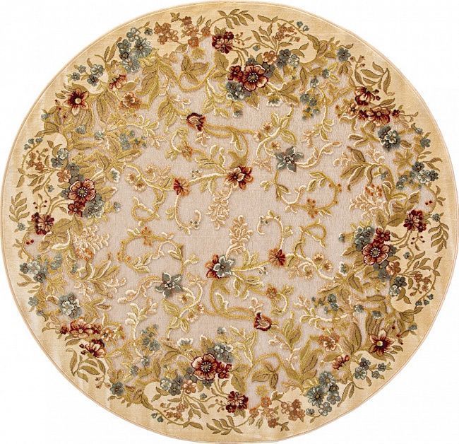 Круглый ковер Genova на джутовой основе из вискозной нити, которую соединили с акриловым шениллом, от бельгийского производителя Ragolle. Плотность ворса - 860 000 узлов на кв.м., высота ворса - 5 мм. Вес - 1850 гр на кв.м. Способ производства - машинная работа. Ковер имеет разный оттенок в зависимости от угла падения света, это связанно с шелковистостью вискозной нити, а также с 3D дизайном, что придает поверхности рельефности.