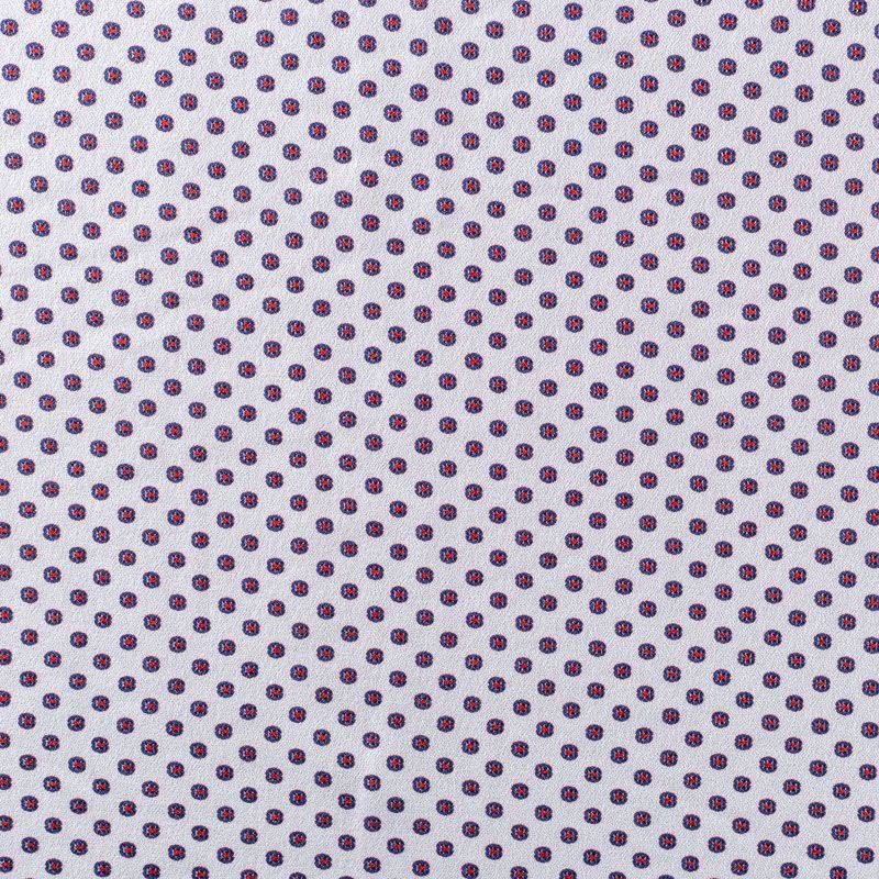 Натуральная вискозная ткань белого оттенка с цветным геометрическим мелким принтом. Легкая, хорошо тянется, драпируется струящимися складками, приятная и комфортная в носке. Материал слегка мнется имеет креповую фактуру. Идеально подходит для пошива  платьев, юбок, блуз, комбинезонов.