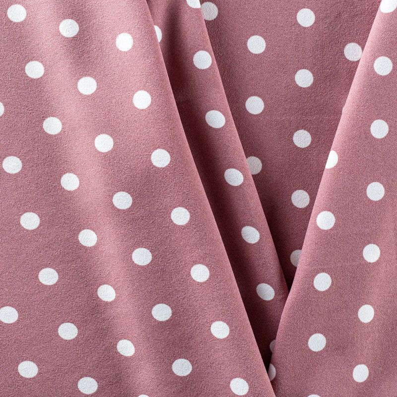 Плательный креп с принтом в горох. Ткань средней плотности, не толстая, пластичная, поверхность полотна матовая, с характерной мелкозернистой фактурой, прочная, хорошо драпирующаяся. Превосходно подойдет для пошива стильного костюма, юбки, платья, комбинезона, топа, брюк.