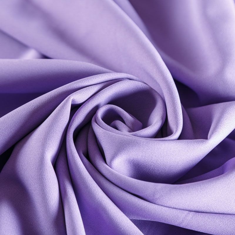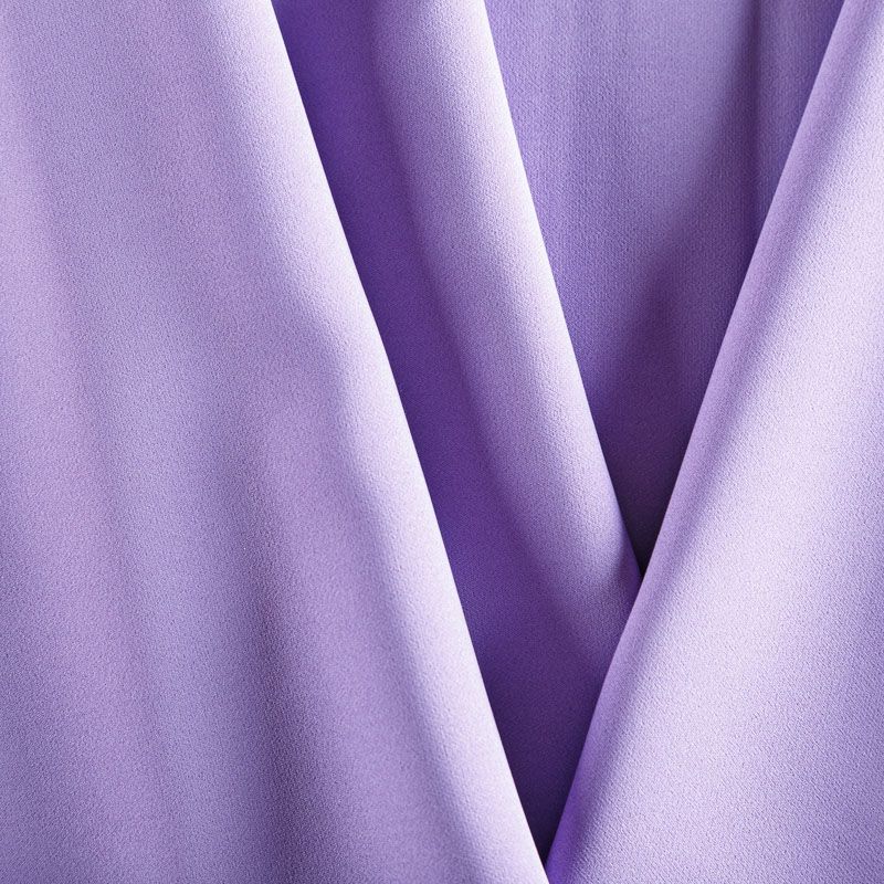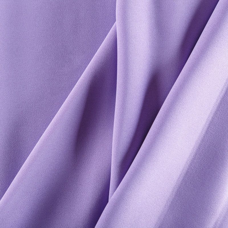 Костюмно-плательный вискозный креп средней плотности цвета лавандового поля. Ткань очень мягкая, пластичная, тянется за счет эластана в составе, имеет зернистую фактуру и матовую поверхность, практически не просвечивает, хорошо драпируется. Подойдет для пошива платья, юбки, блузки, туники, топа, комбинезона, брюк мягкого и широкого кроя.
