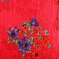 Плательно-блузочная вискозная ткань насыщенного красного оттенка с крупным цветочным принтом с креповым плетением. Ткань средней плотности, имеет зернистую фактуру и матовую поверхность, не просвечивает, пластичная, хорошо драпируется мягкими складками, струится. Подходит для пошива платья и сарафана, юбки, блузки, туники, топа, комбинезона.