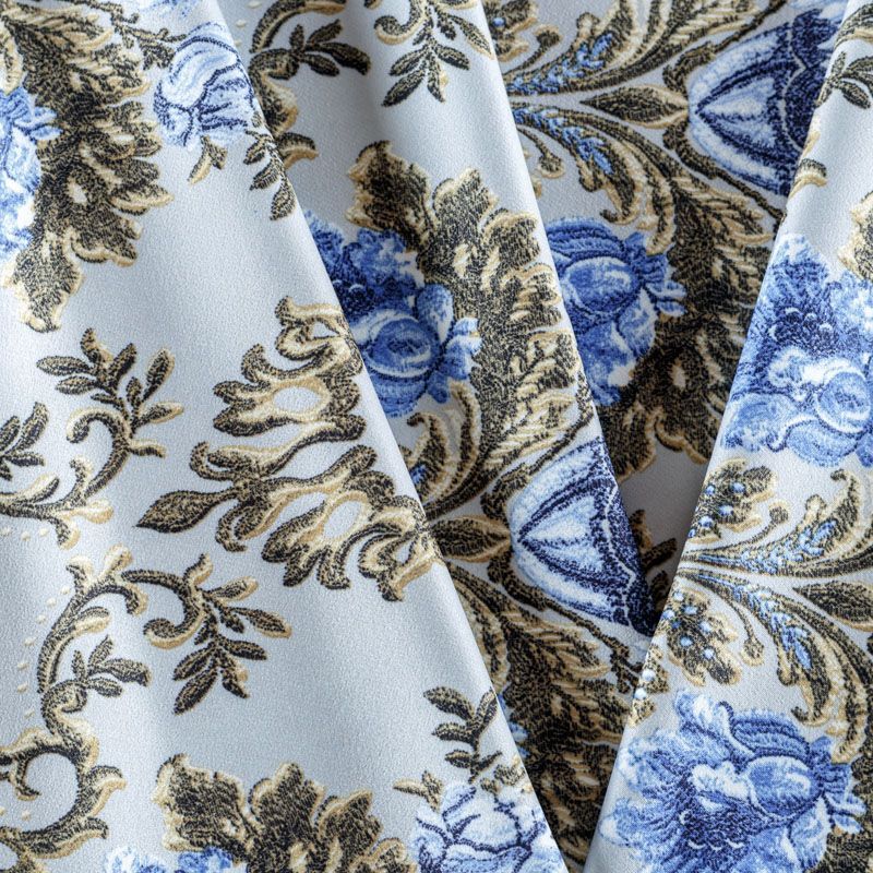 Плательный креп средней плотности, ткань не толстая, пластичная, поверхность полотна матовая, с характерной мелкозернистой фактурой, прочная, практически не мнется, хорошо драпируется, тянется за счет эластана в составе. Превосходно подойдет для пошива свободного костюма, юбки, платья, туники, лонгслива, комбинезона, топа, брюк.