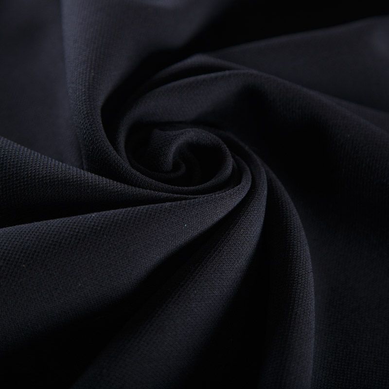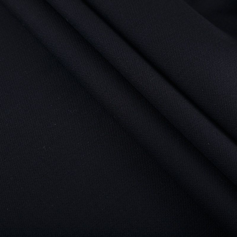 Итальянский шерстяной креп в черном оттенке. Поверхность ткани шероховатая, матовая. Прекрасно держит форму, тянется за счет эластана в составе. Подойдет для пошива одежды прямых силуэтов, костюма, юбки, шорт, пиджака, жилета.