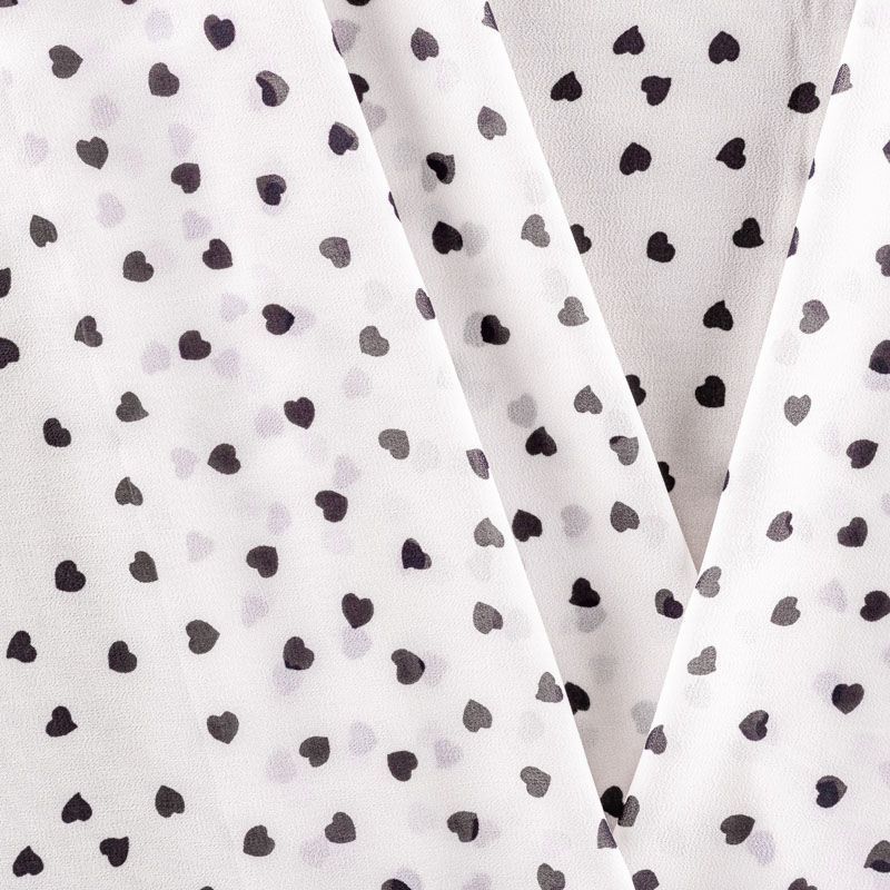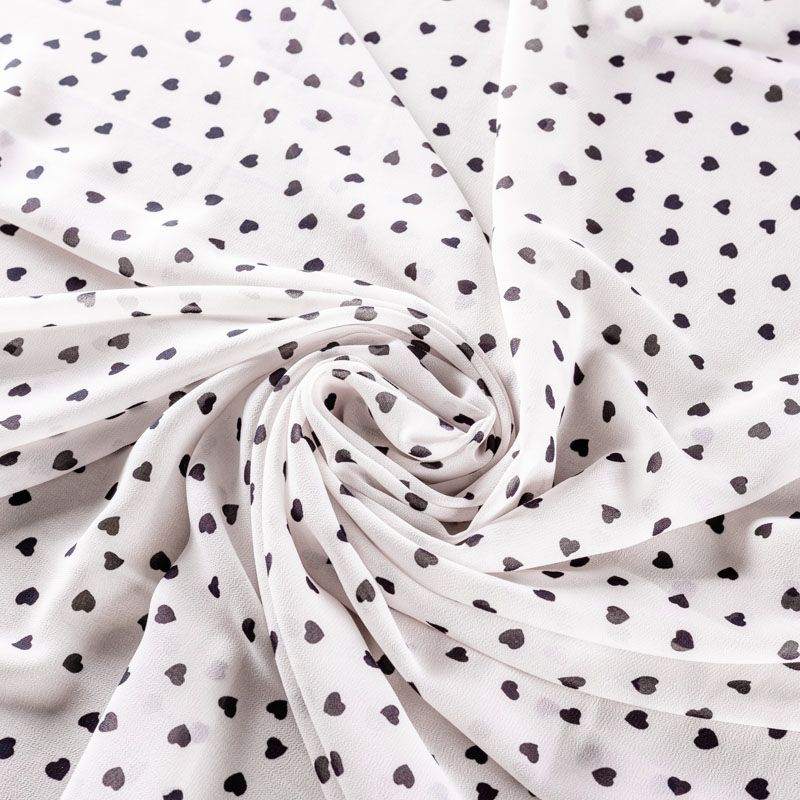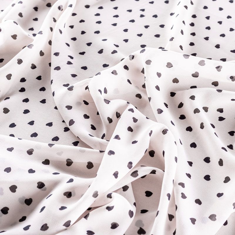 Легкий, воздушный, мягкий и нежный креп-шифон, прекрасно драпируется, тянется, приятен к телу, полупрозрачный, может потребоваться подклад. Поверхность матовая, без блеска, фактурная. Идеален для нежных платьев летящих силуэтов, топов, туник, блузок, юбок с роскошными драпировками и воланами.