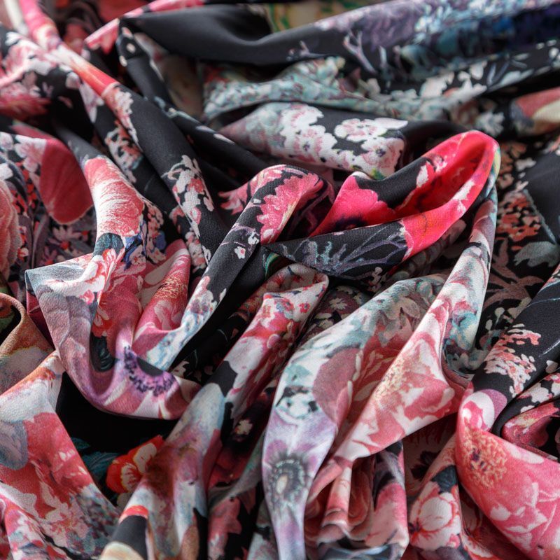 Креп-шифон легкий, воздушный, мягкий и нежный, прекрасно драпируется, тянется, приятен к телу, полупрозрачный, может потребоваться подклад. Поверхность шероховатая, матовая, без блеска. Тянется за счет эластана в составе. Идеален для нежных платьев летящих силуэтов, топов, туник, блузок, юбок с роскошными драпировками и воланами.