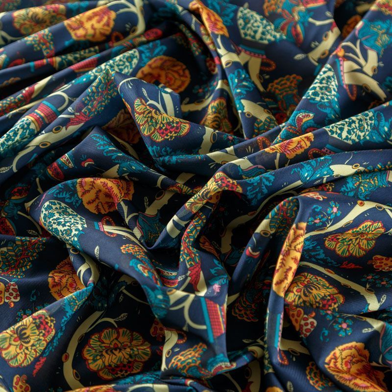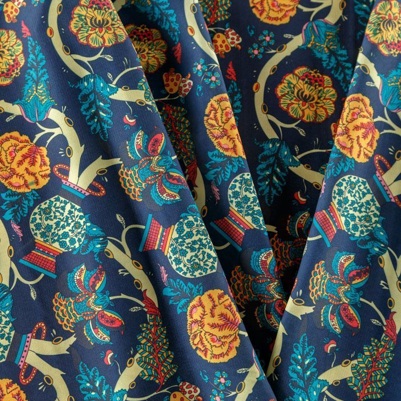 Креп-шифон 027-08366 темно-синий принтованный в Уфе