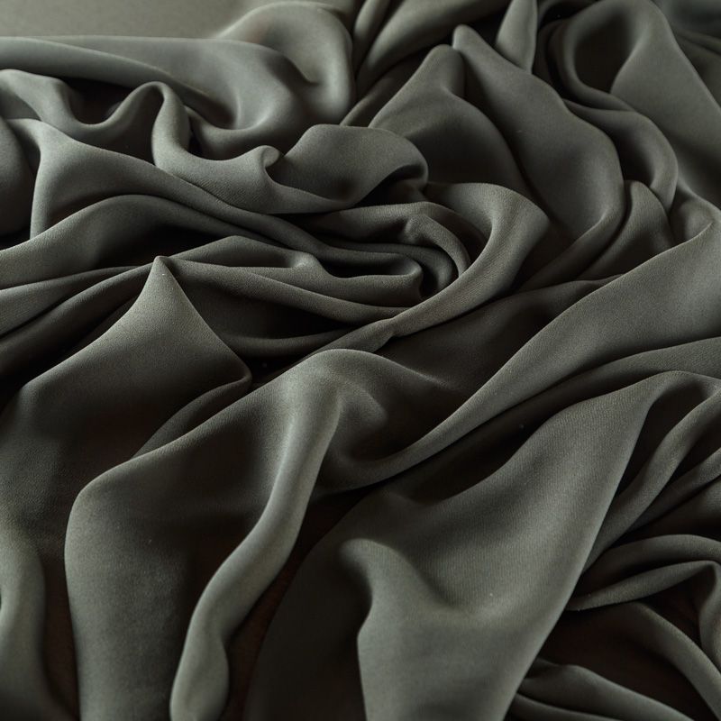 Креп-шифон 027-09818 зеленый хаки однотонный