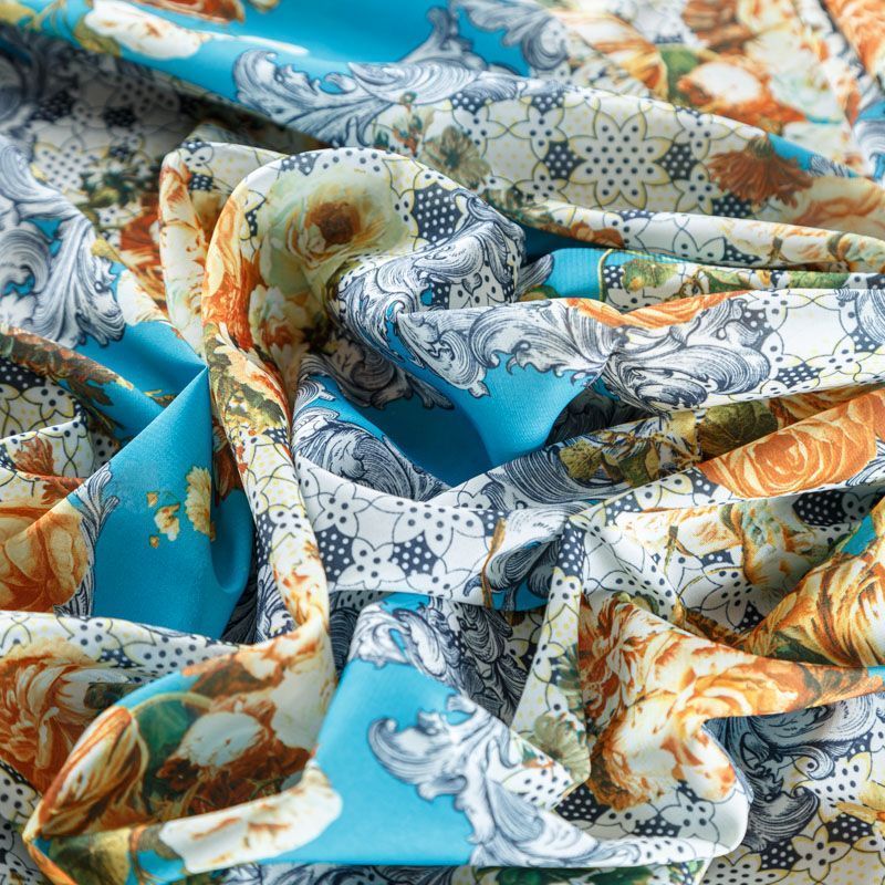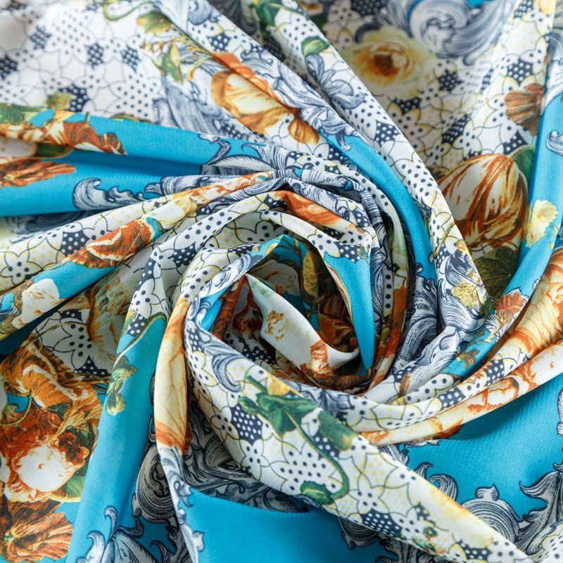 Креп-шифон К07-439 голубой принтованный в Уфе