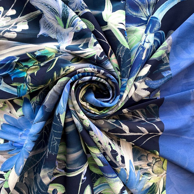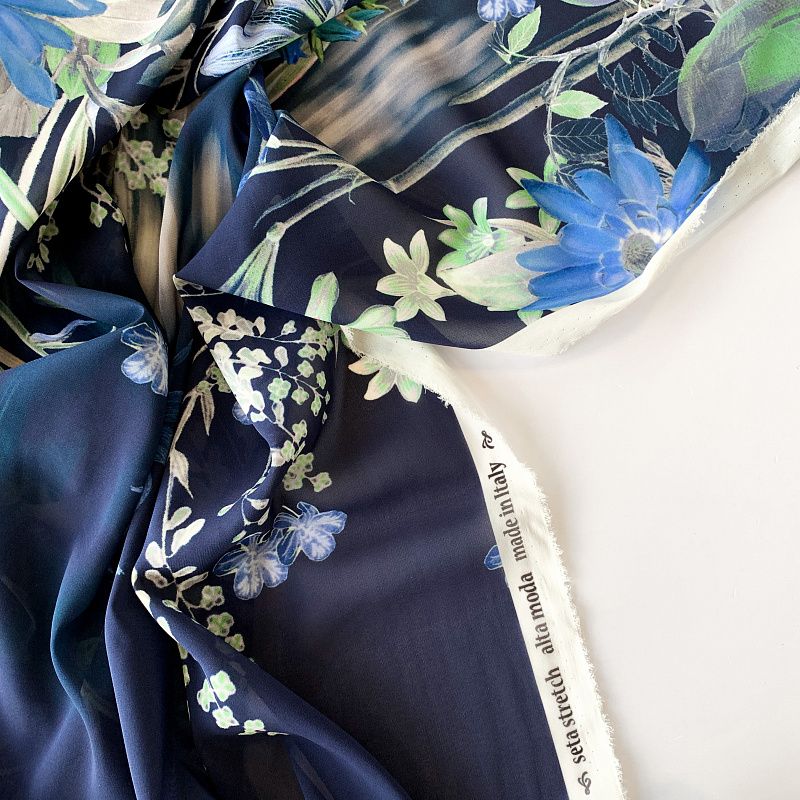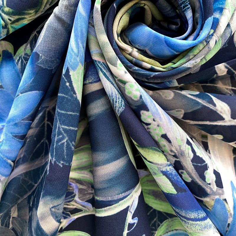 Креп-шифон натуральный К32-375 темно-синий принтованный в Уфе