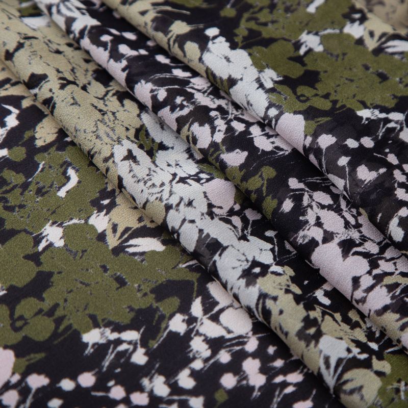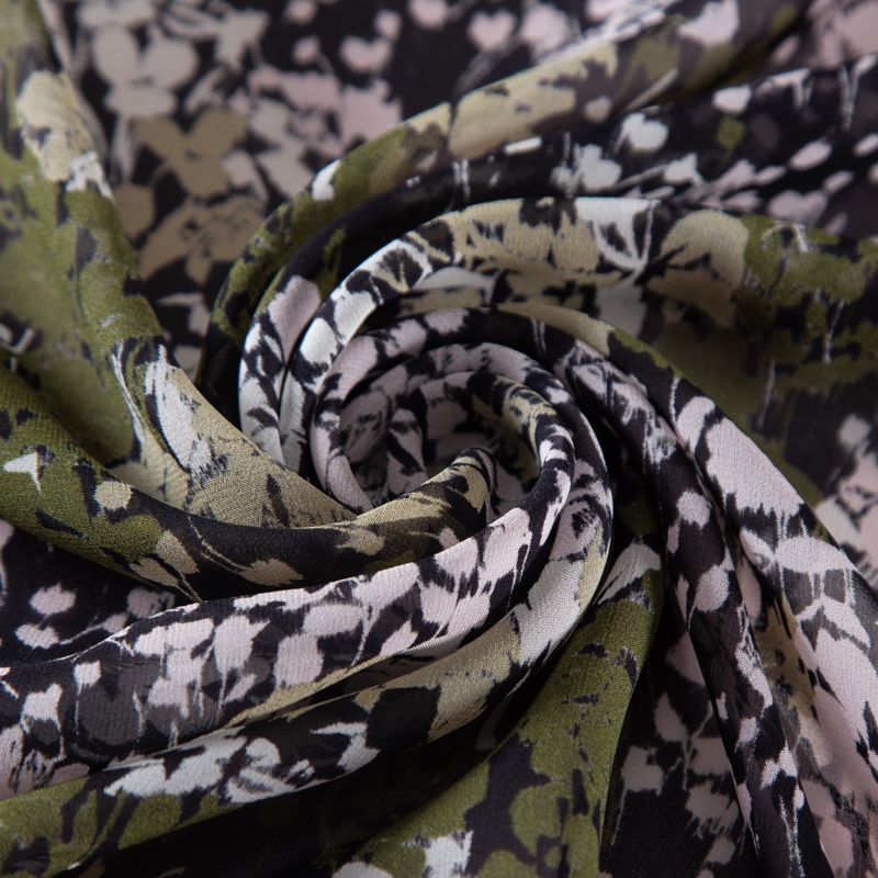 Креп-шифон шелковый 027-19852 хаки принтованный в Уфе