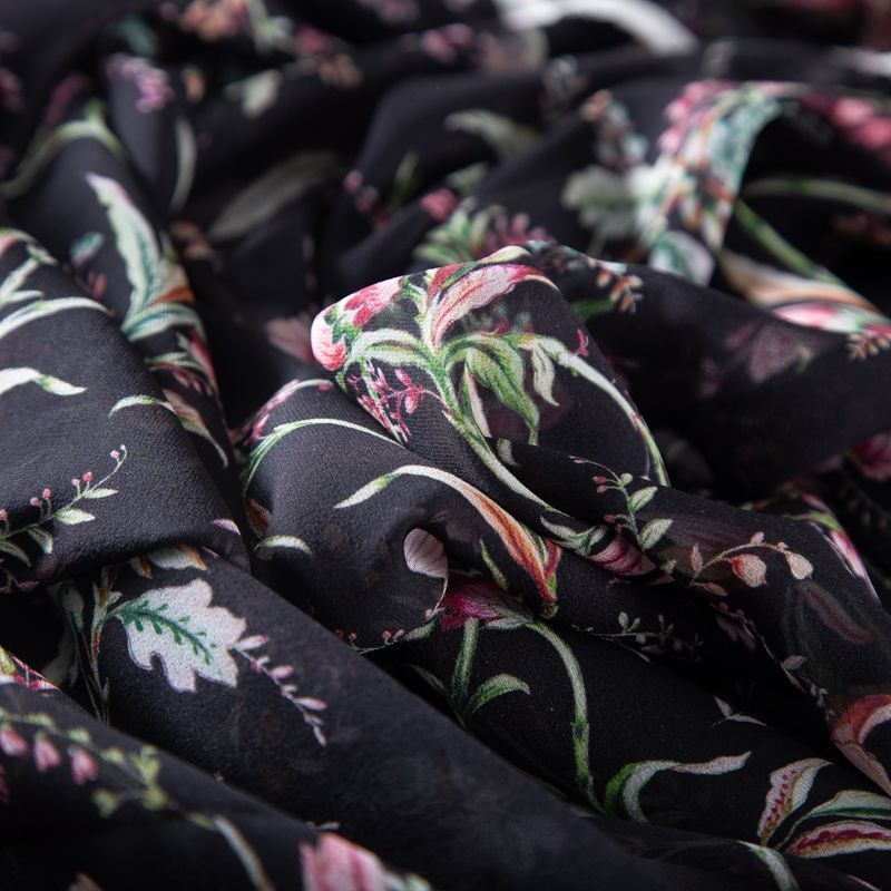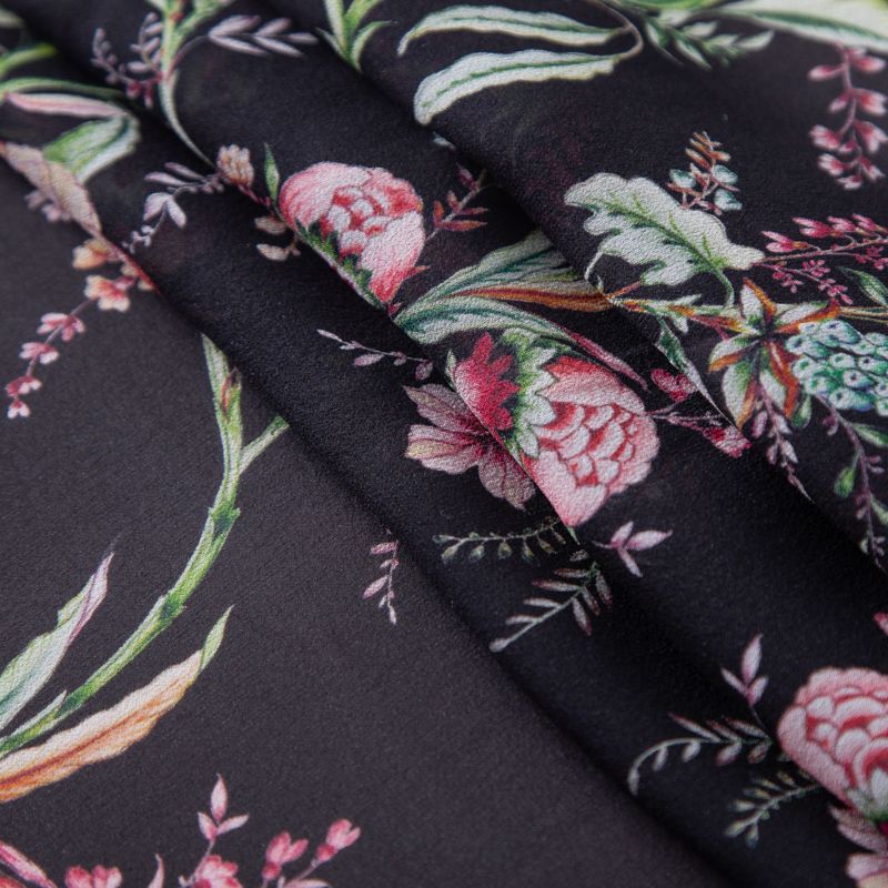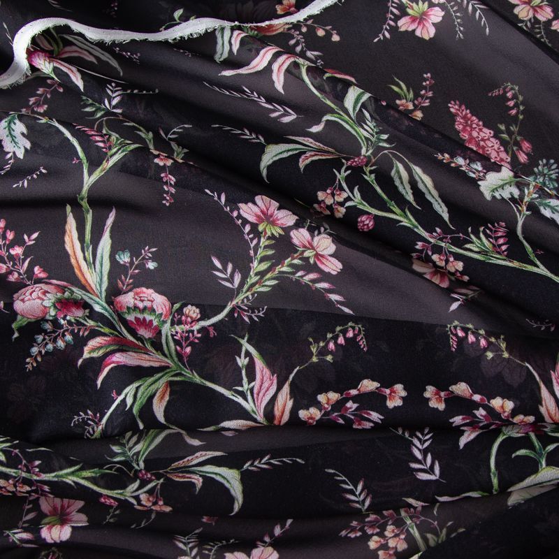 Креп-шифон шелковый 027-19926 черный принтованный