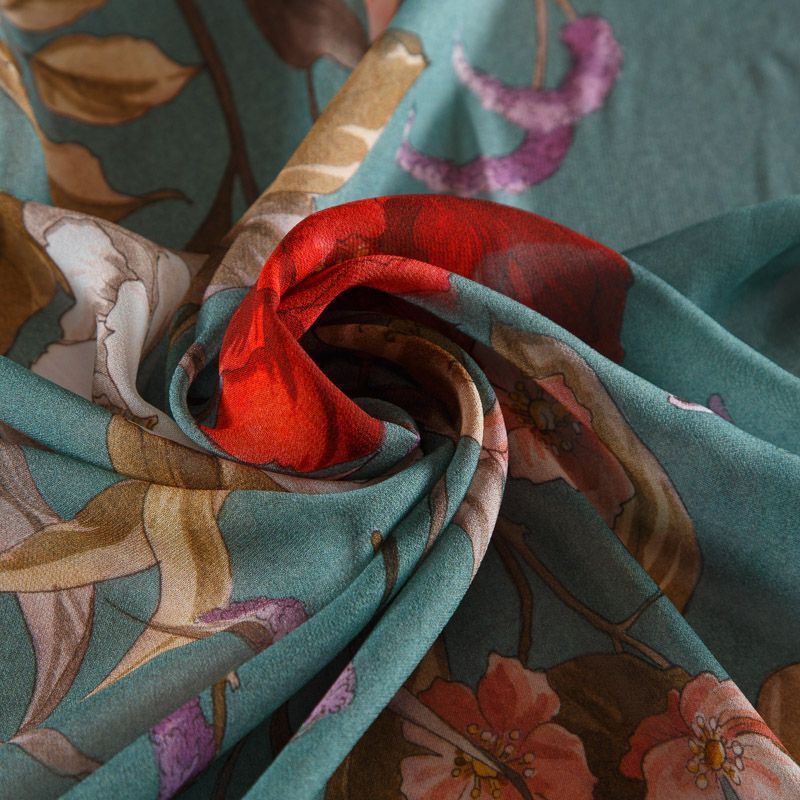Креп-шифон вискозный 027-16407 серо-бирюзовый принтованный в Уфе