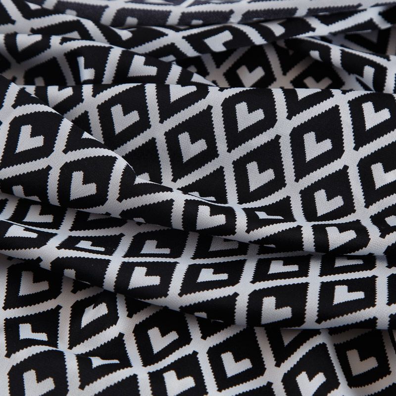 Креп стрейч 026-17413 черный принтованный
