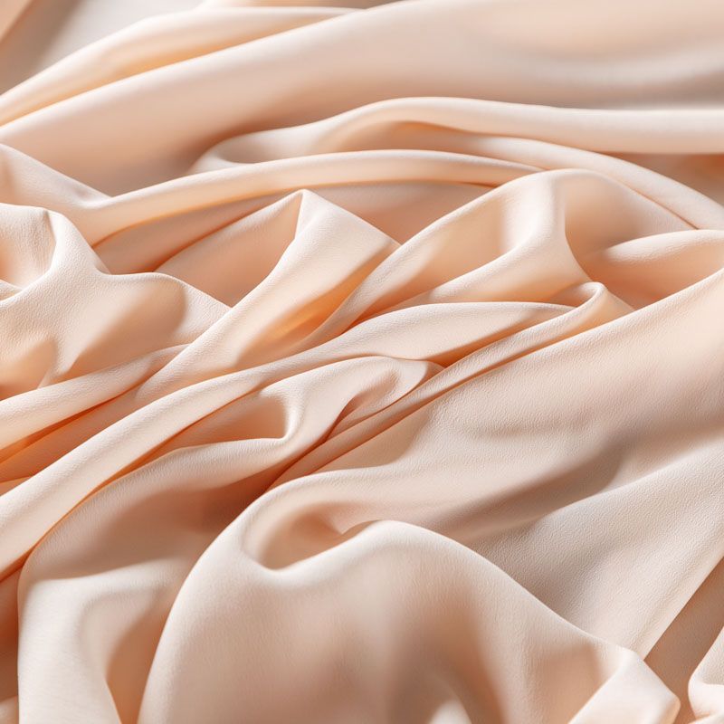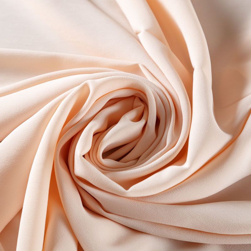 Шелковый крепдешин в светло-абрикосовом оттенке, тонкий, легкий, фактурный, приятный на ощупь, тянется за счет эластана в составе. Ткань слегка просвечивает, можно использовать подклад. Прекрасно будет смотреться в платье, юбке, тунике, рубашке или блузке.