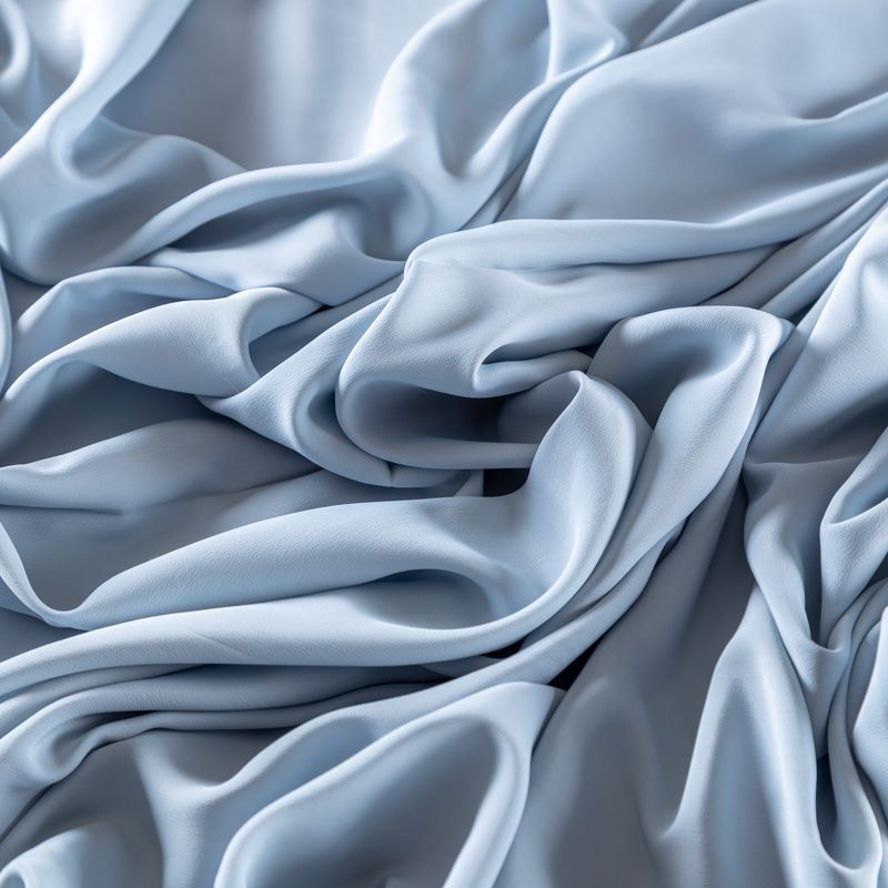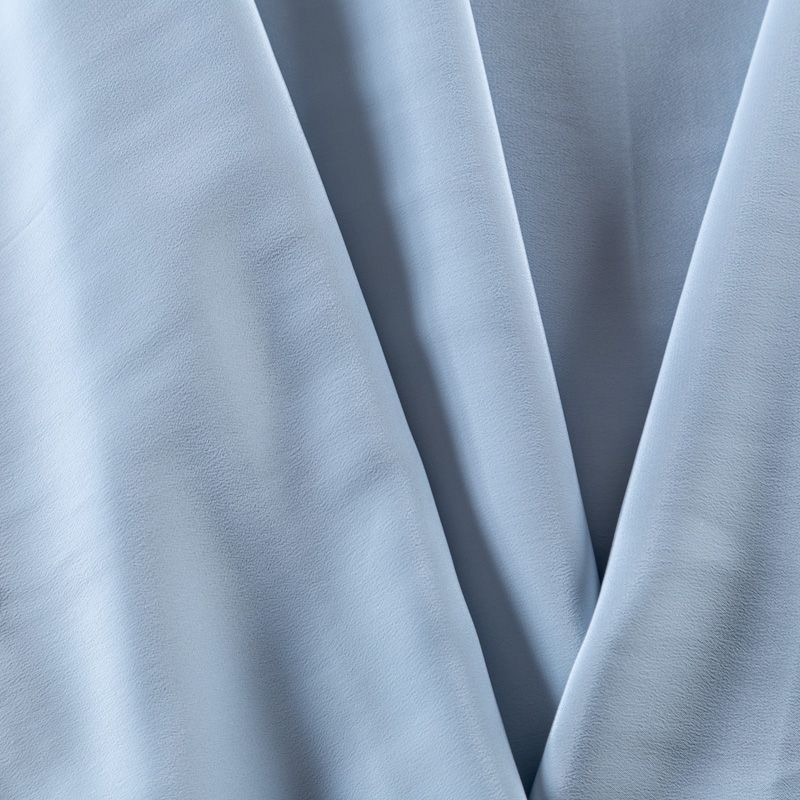 Итальянский натуральный шелковый крепдешин в светло-голубом оттенке, фактурный, легкий и струящийся, слегка просвечивает, отлично драпируется. Идеально подойдет для пошива платьев и сарафанов расклешенных моделей, с воланами, летящих юбок, топов, блузки, юбки, широких брюк, костюма в пижамном стиле.