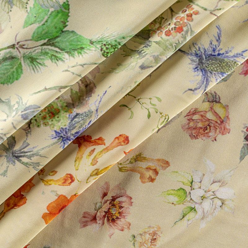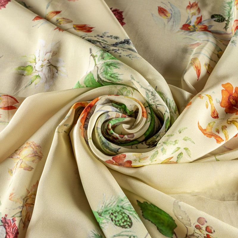 Крепдешин натуральный К01-0016 дынный принтованный в Уфе