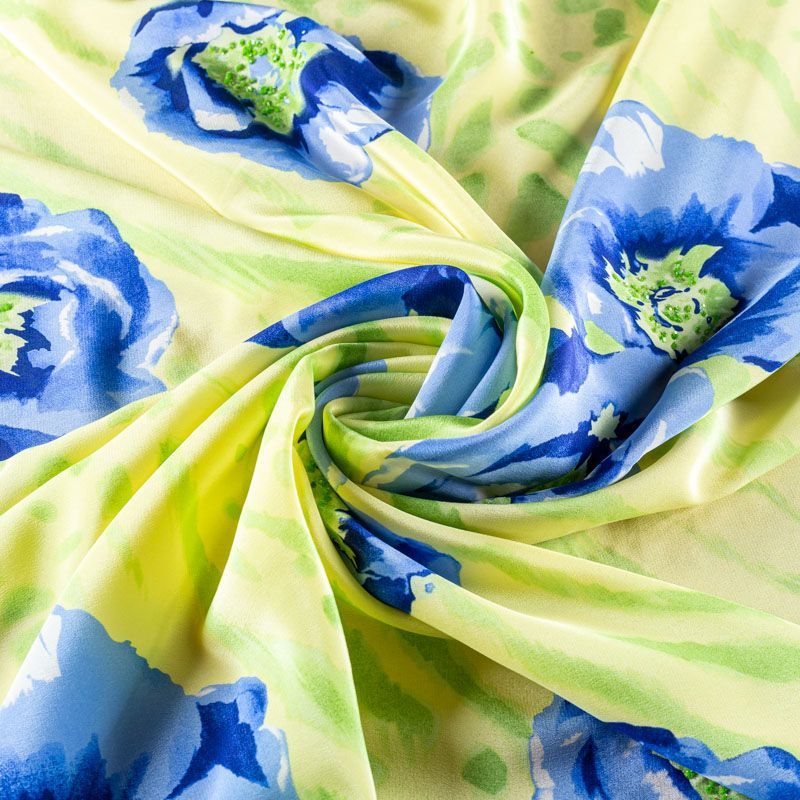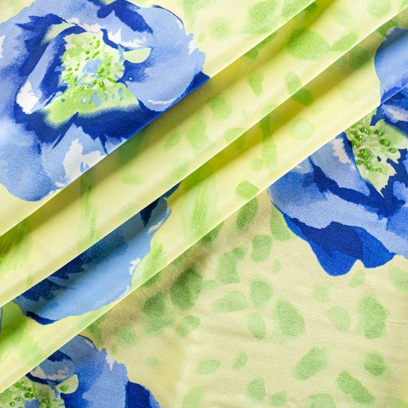 Крепдешин натуральный К01-651 салатовый принтованный