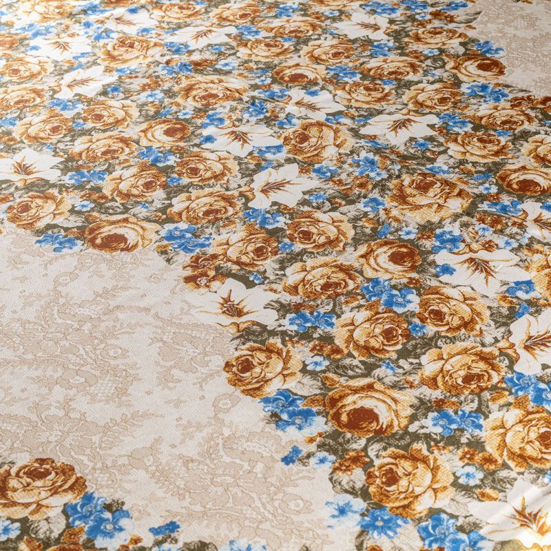 Натуральный шелковый крепдешин с матовой поверхностью, легкий, струящийся, хорошо драпируется. Изысканное сочетание цветочного принта в коричнево-синих оттенках с имитацией нежного тонкого кружева подойдет для пошива летнего сарафана, платья, блузки, костюма в пижамном стиле, широких брюк или юбки.