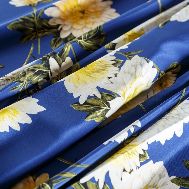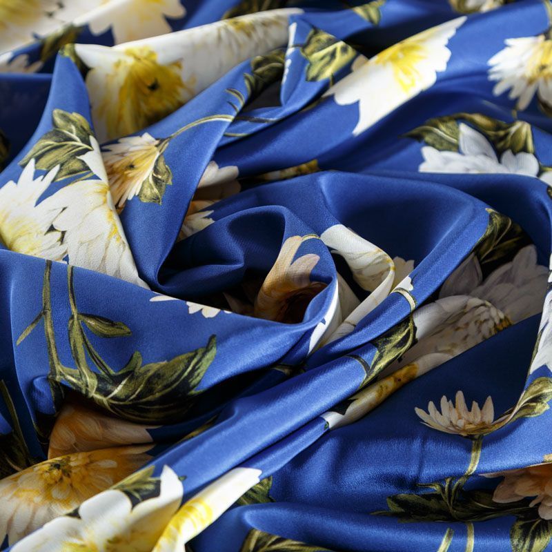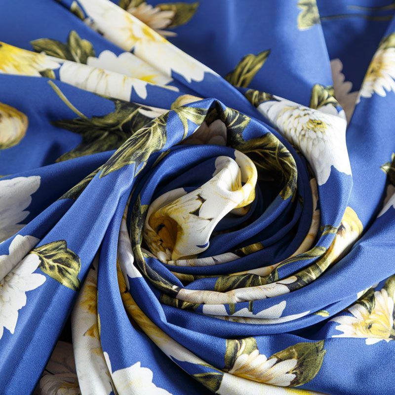 Крепдешин натуральный К15-003 синий принтованный в Уфе