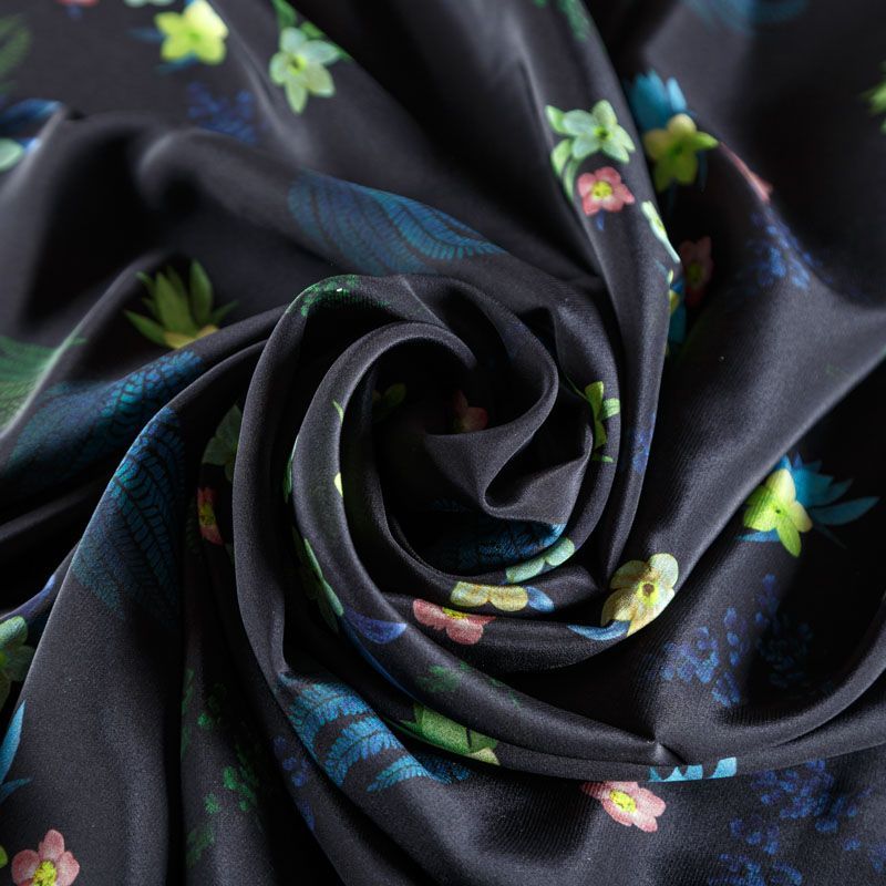 Крепдешин натуральный К24-032 черный принтованный в Уфе
