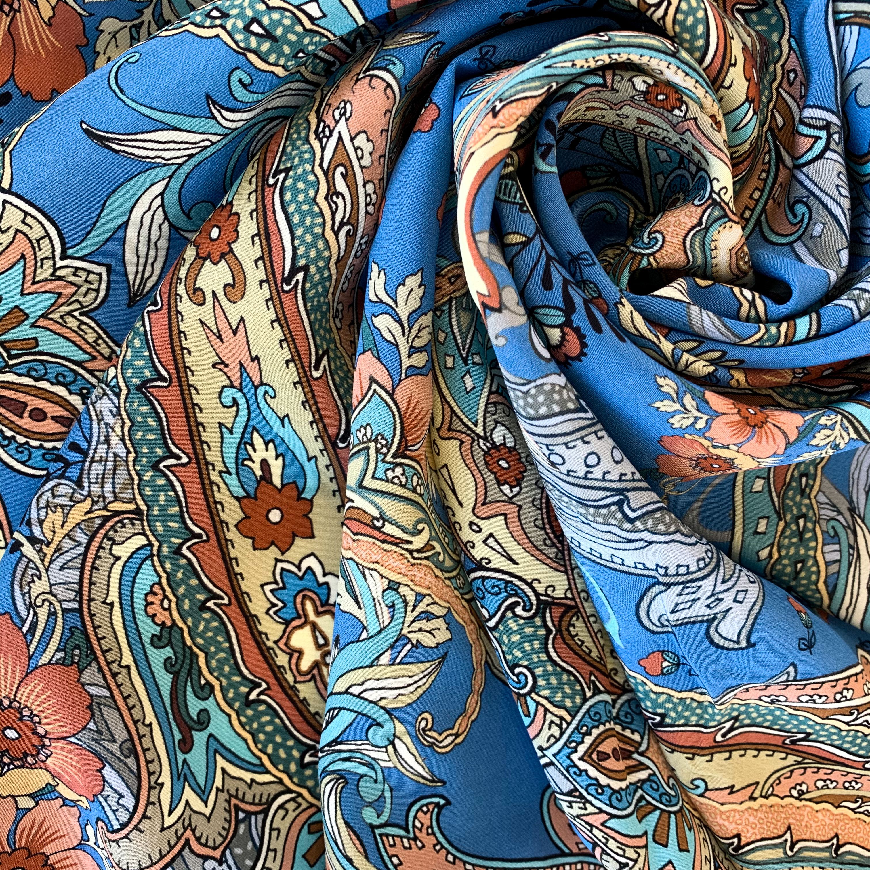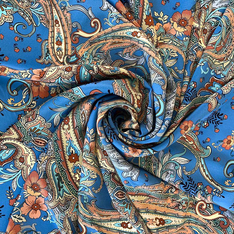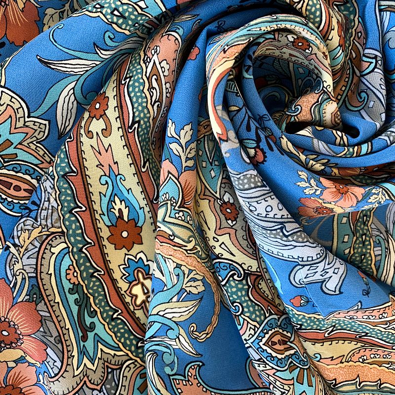 Крепдешин натуральный К32-250 голубой принтованный в Уфе