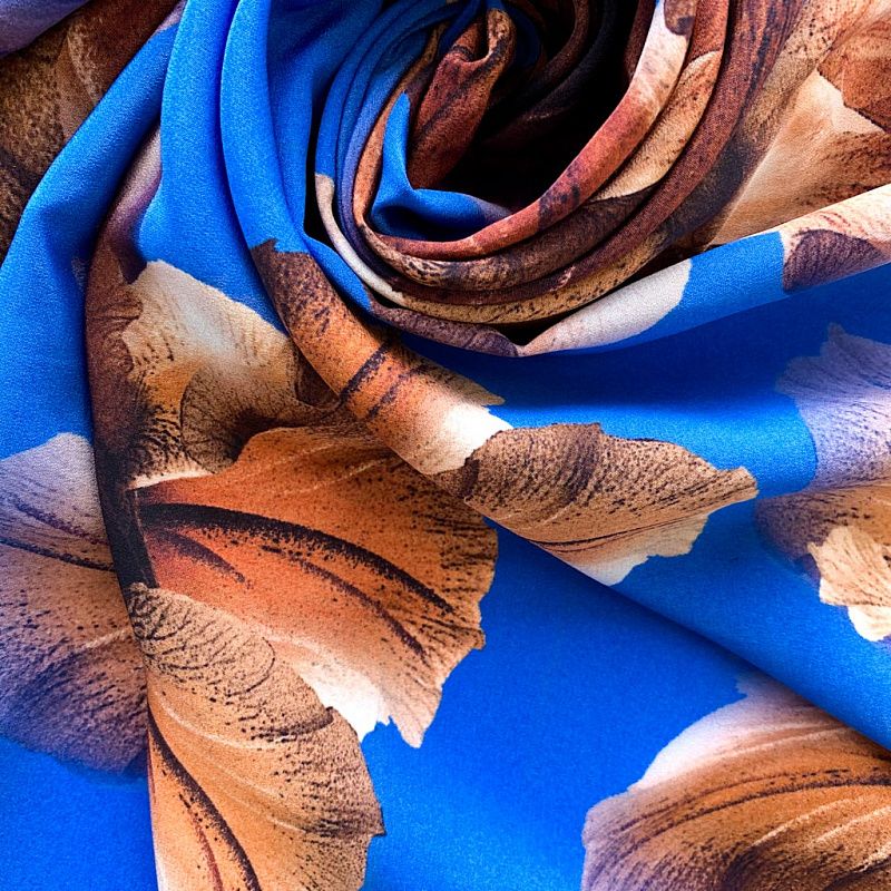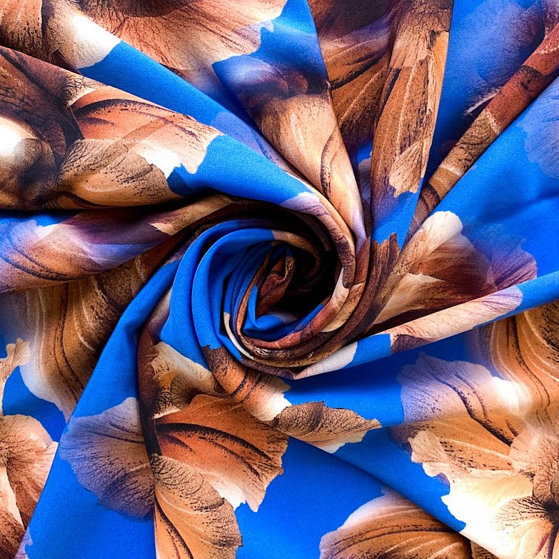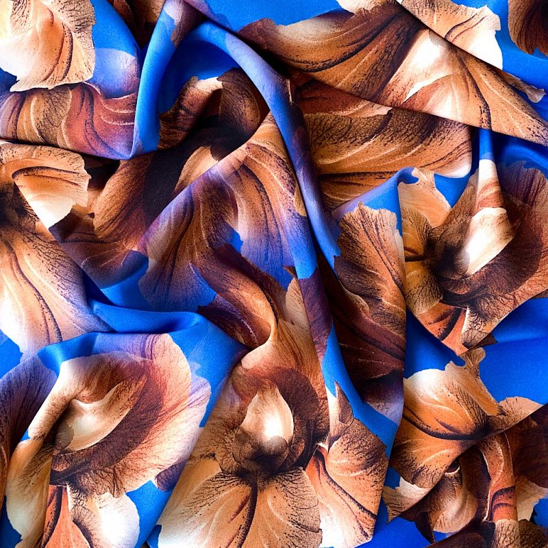 Крепдешин натуральный К32-373 лазурно-синий принтованный в Уфе