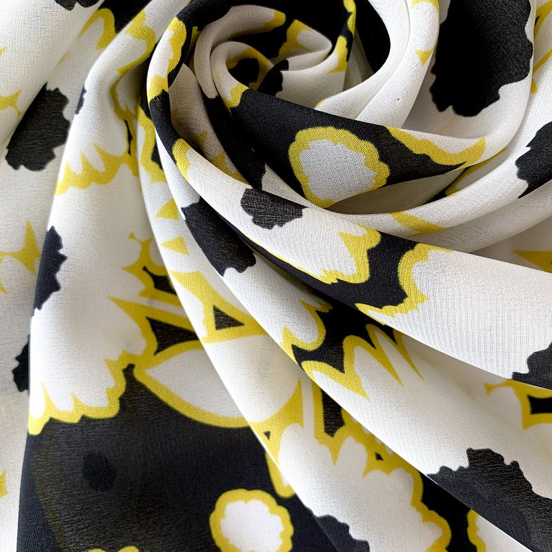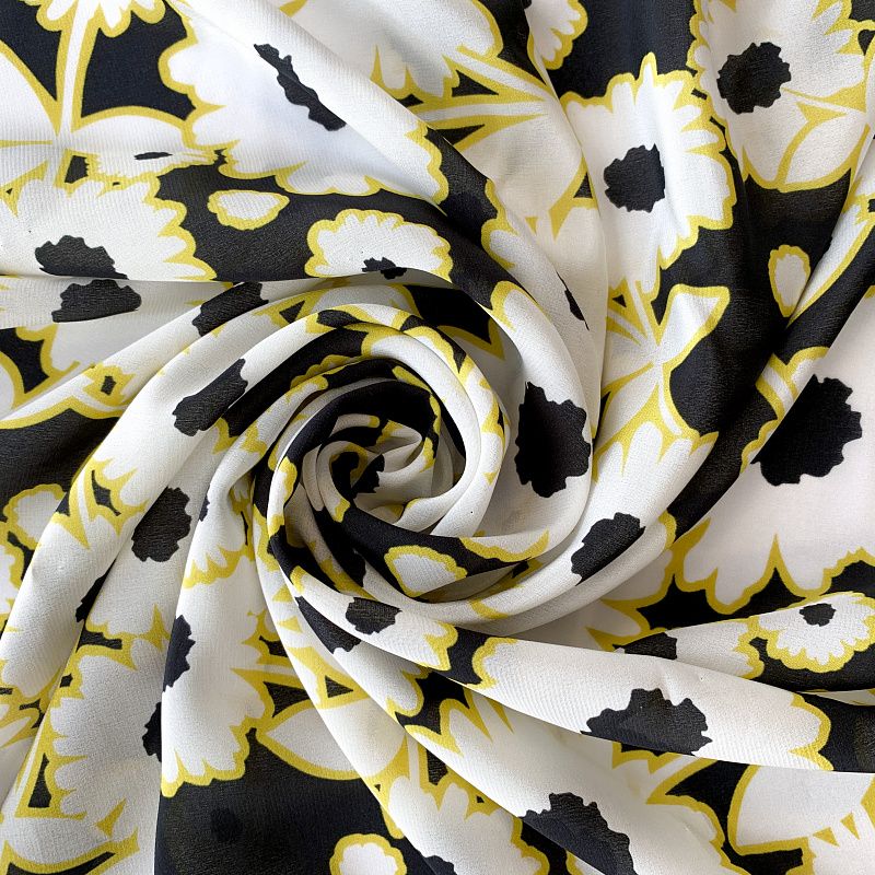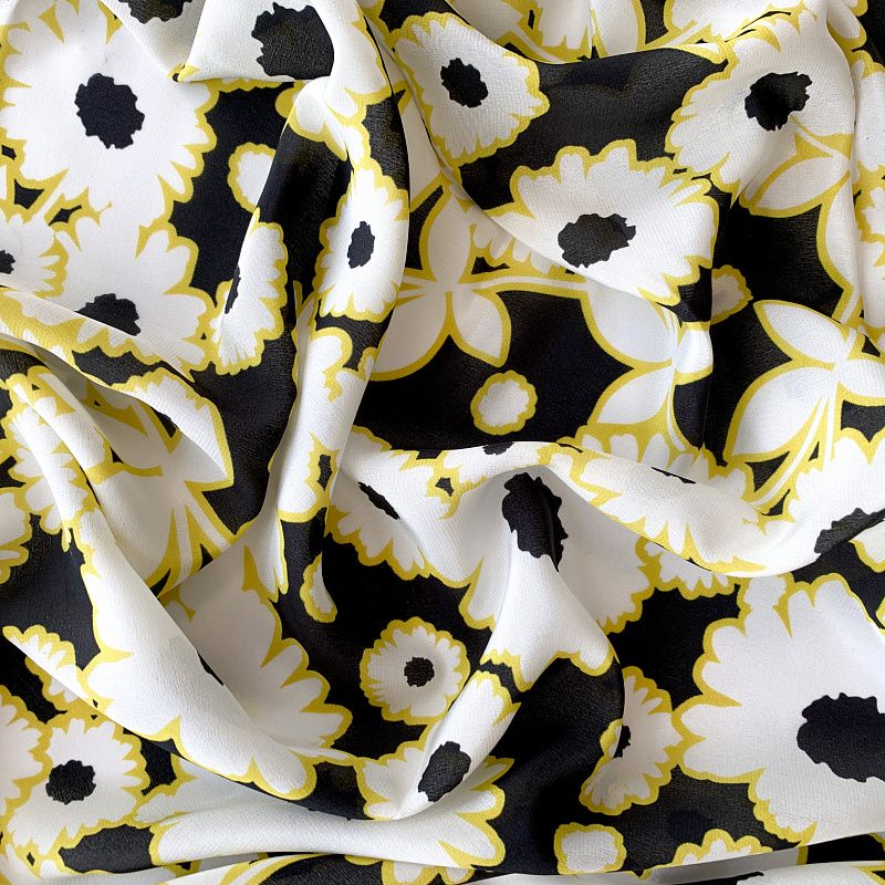 Крепдешин натуральный К32-374 черный принтованный в Уфе