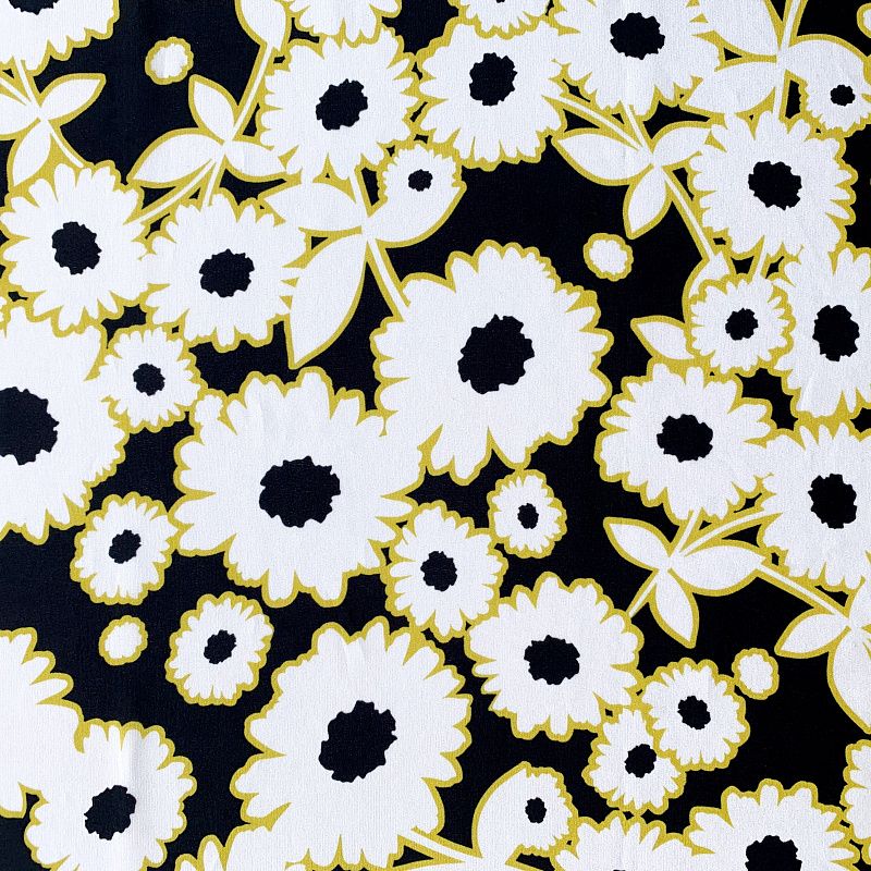 Крепдешин натуральный К32-374 черный принтованный