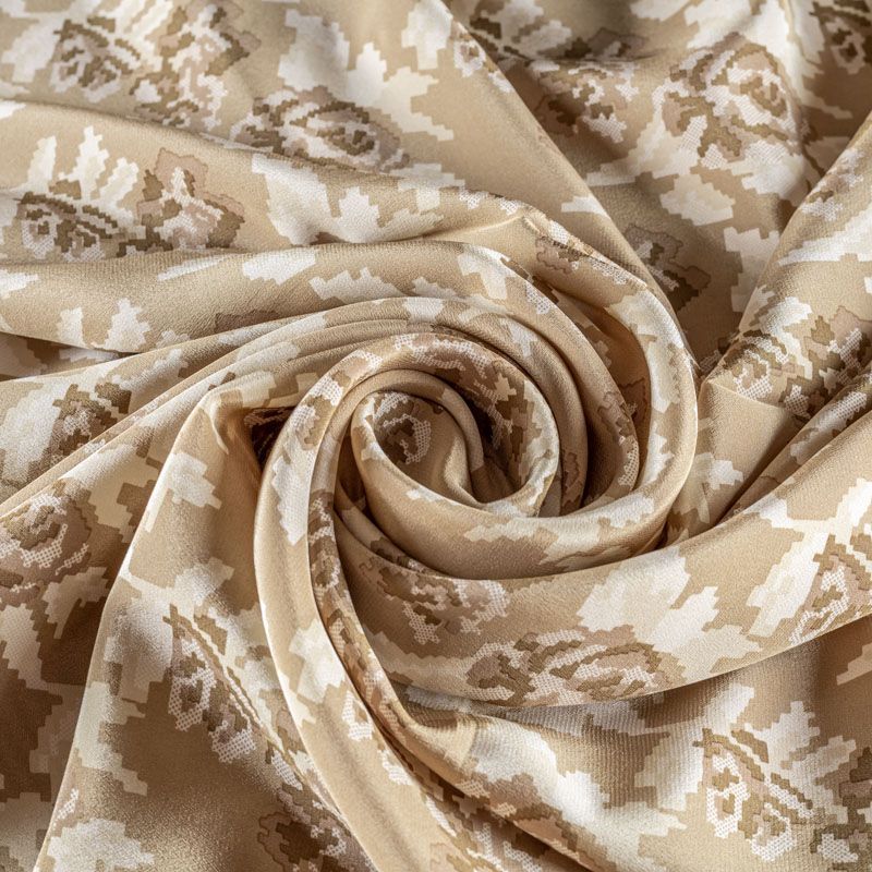 Крепдешин натуральный К4-0015 серо-бежевый принтованный в Уфе