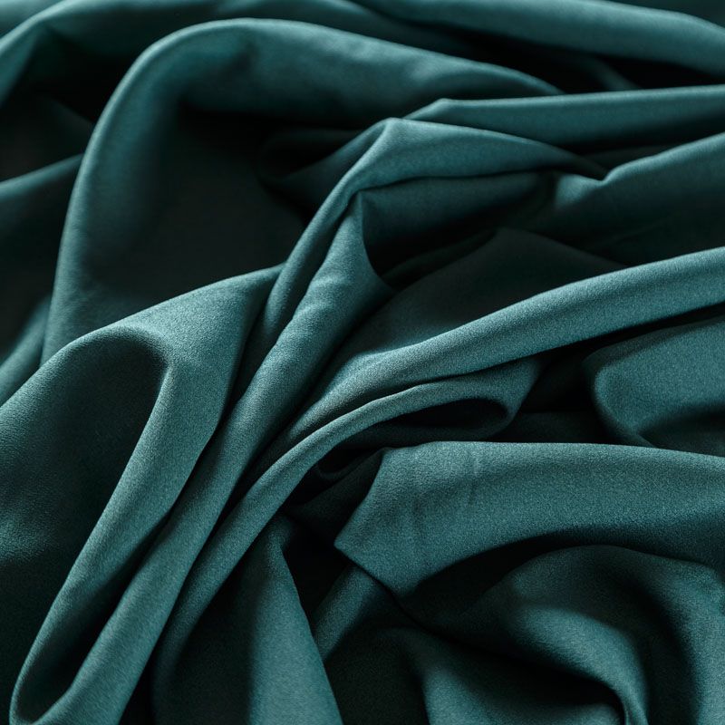 Крепдешин темно-зеленого оттенка, тонкий, легкий, фактурный, приятный на ощупь. Очень пластичный, тянется за счет эластана в составе, прекрасно драпируется и струится. Ткань слегка просвечивает, можно использовать подклад. Идеально будет смотреться в платье, юбке, тунике, рубашке или блузке.