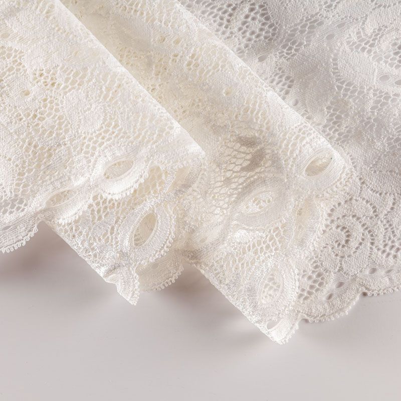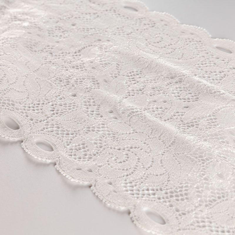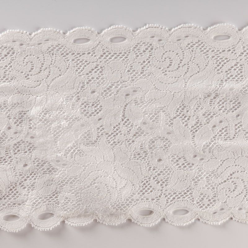 Эластичное кружево сочетает в себе мягкость, прочность и красоту, благодаря своей упругости оно долго не теряет первоначальную форму. Используется для пошива нижнего белья, а так же применяется как отделочный декор в одежде.